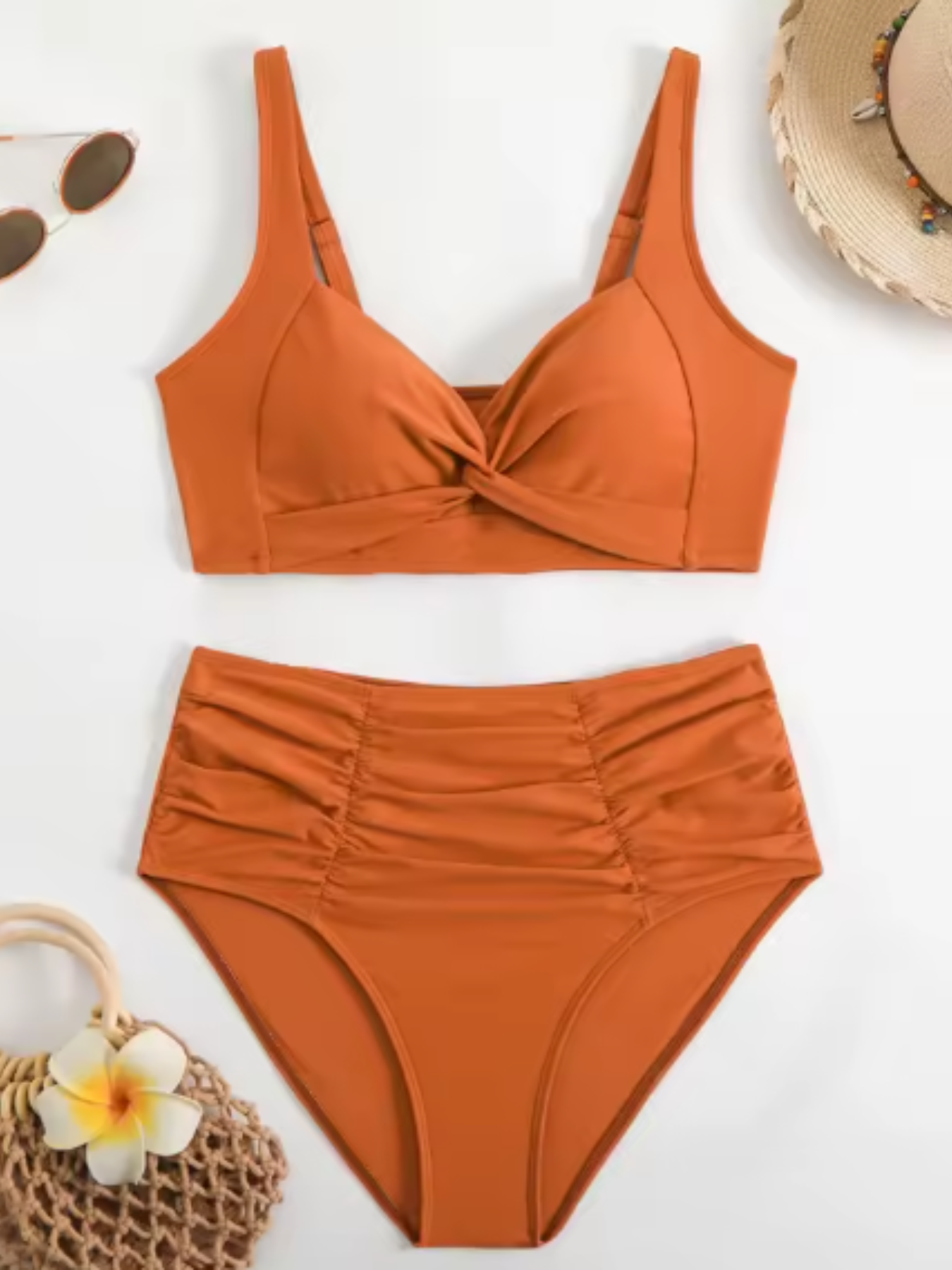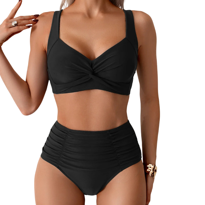En flatterende bikini med høy midje som former magen, løfter silhuetten og gir trygghet i alle aldre. Perfekt for kvinner som ønsker både støtte og stil – enten du er på stranden, ved bassenget eller nyter en solrik dag i hagen.